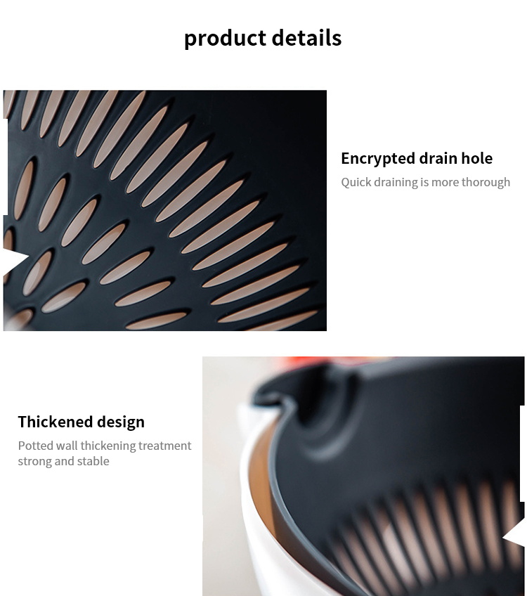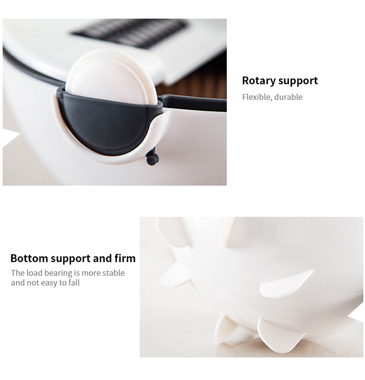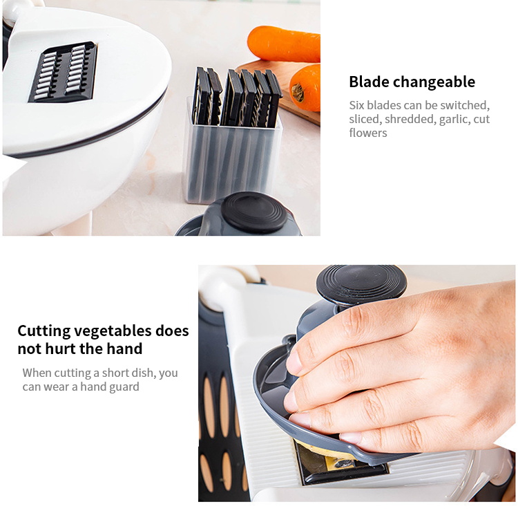 1. Removable shredder, can change the blade as needed, the top cover can be removed freely 2. Comfortable non-slip handle, one-handed control, safer 3. Raise the bottom leg, anti-slip stability, ventilation and ventilation, not on the table and the vegetable cutter 4. Dense draining mesh, draining quickly