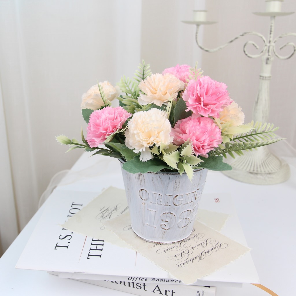Artificial Flower Bonsai Set Tin Bucket Decoration