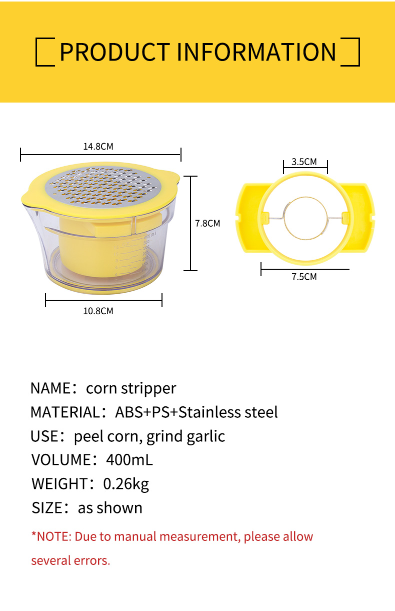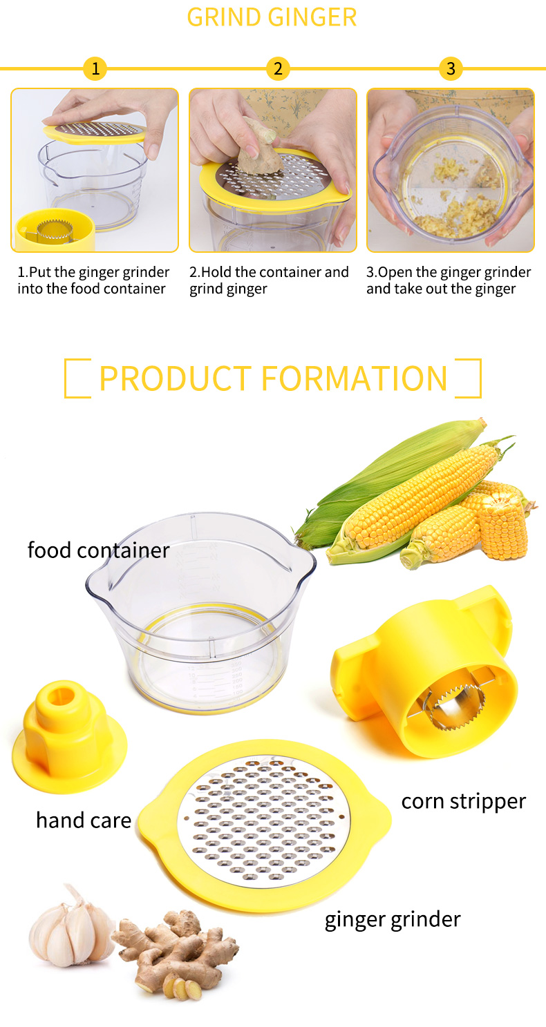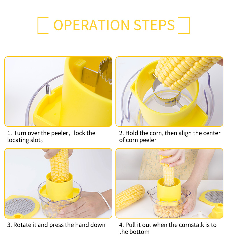 রান্নাঘর প্লাস্টিকের ম্যানুয়াল হলুদ ভুট্টা স্ট্রিপার ভেজিটেবল পিলার পাইকারি