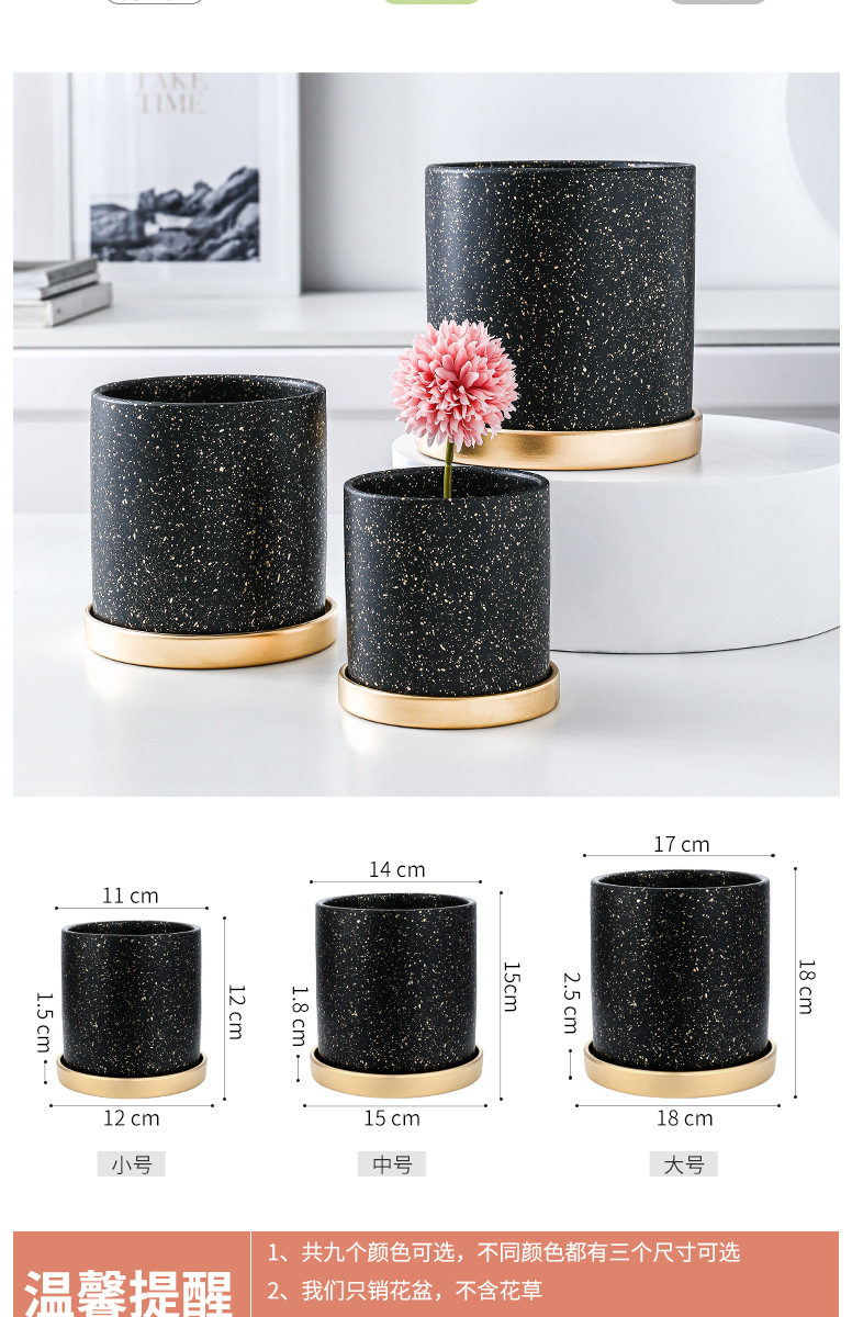 Ceramic Straight Flower Pot With Tray Green Carcass Round Basin