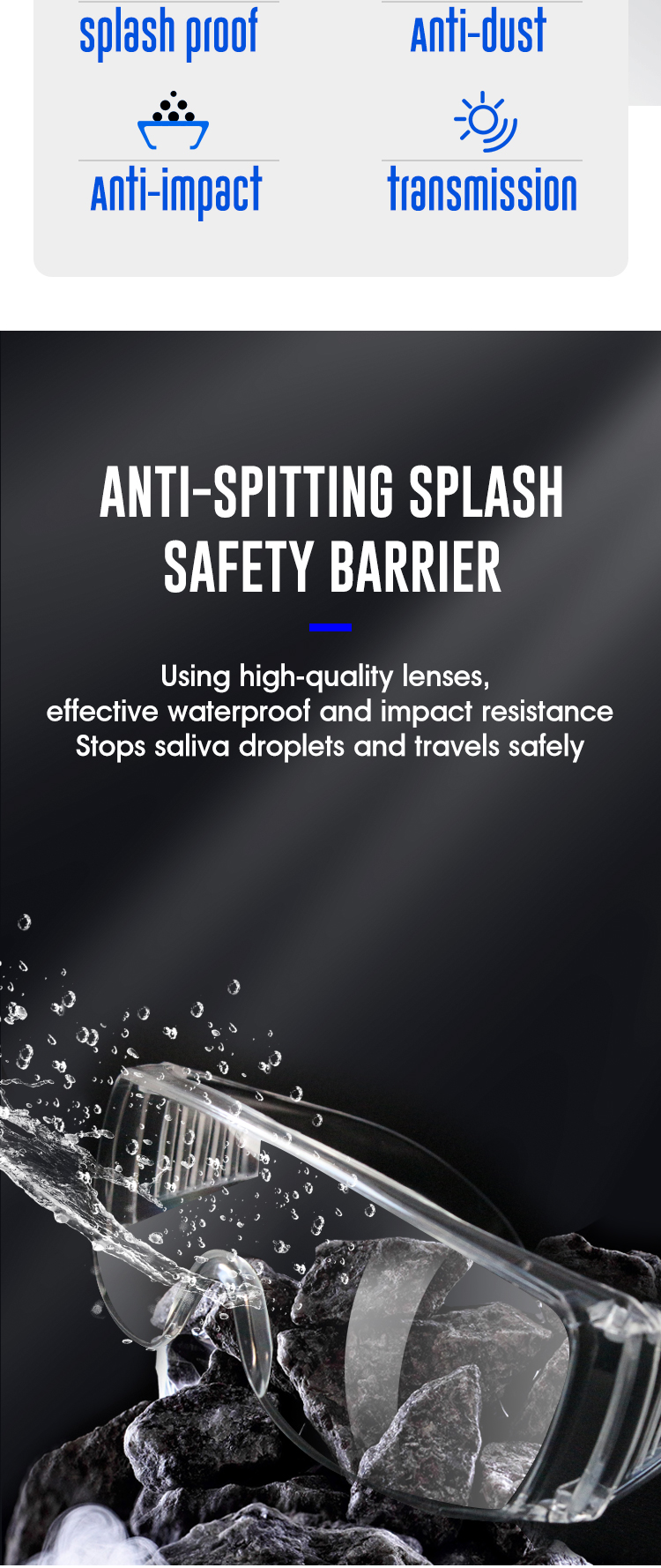 1. Unrestricted vision in all direction. Lens are available for Anti-scratch , Anti-impact , UV rays resistance 2. Used for Construction, Manufacturing, Medical, outdoor sports, Driving etc. 3. Fast leadtime, Cheap price, High quality, etc.