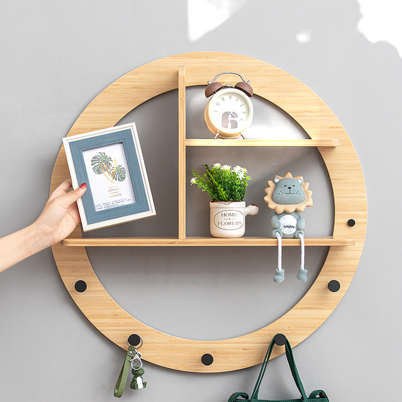 Coat Hook Bamboo Shelf Rack Decoration Round Wall Mounted Hooks
