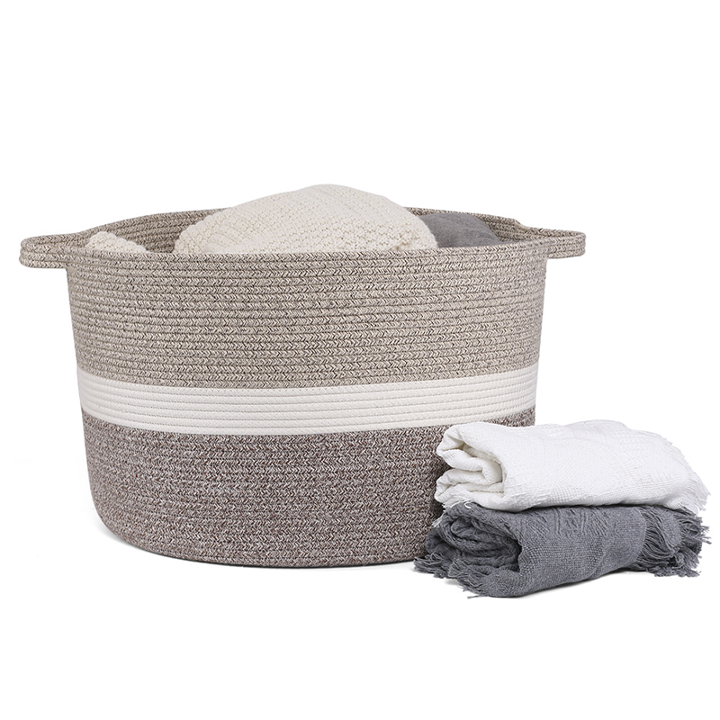 Collapsible Cotton Rope Basket Woven Rope Storage Laundry Basket