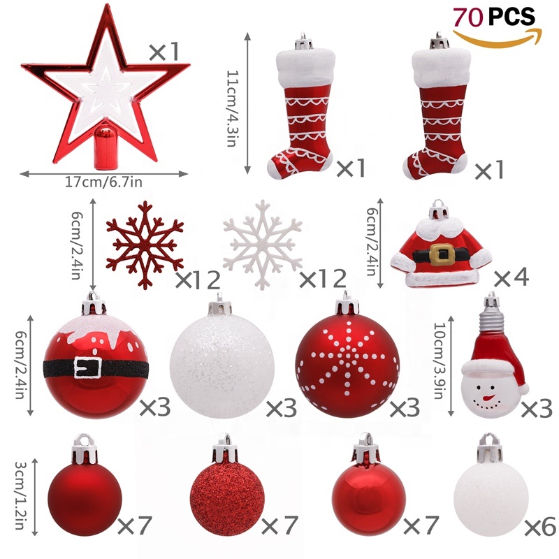 70pcs červená a bílá vánoční strom dekorace ornament
