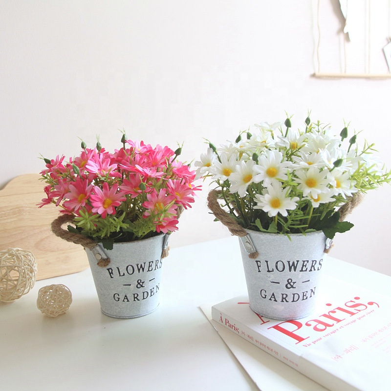 Retro margarita simulazio txikia bonsai landarea lore faltsua ezarri