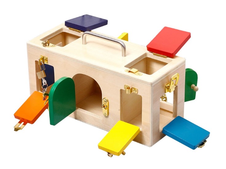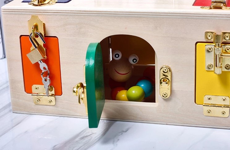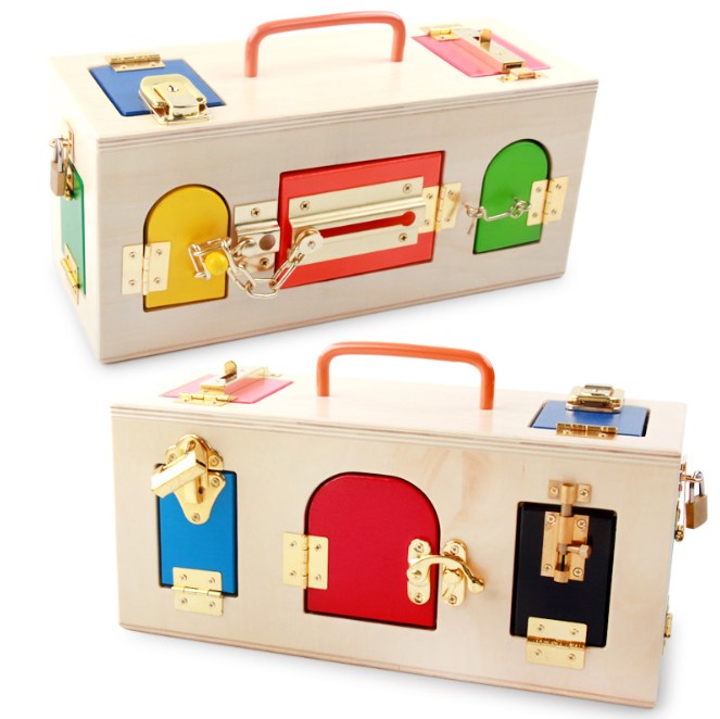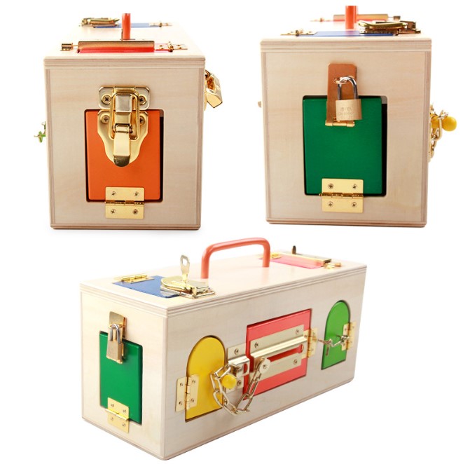 Fashion Style Educational Learning Unlock Toy Montessori Wooden Lock Box Preschool Training Toy Game Toys for Kids