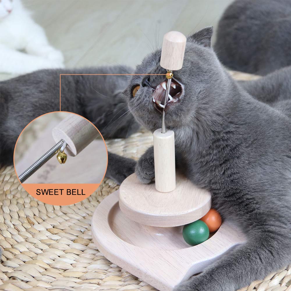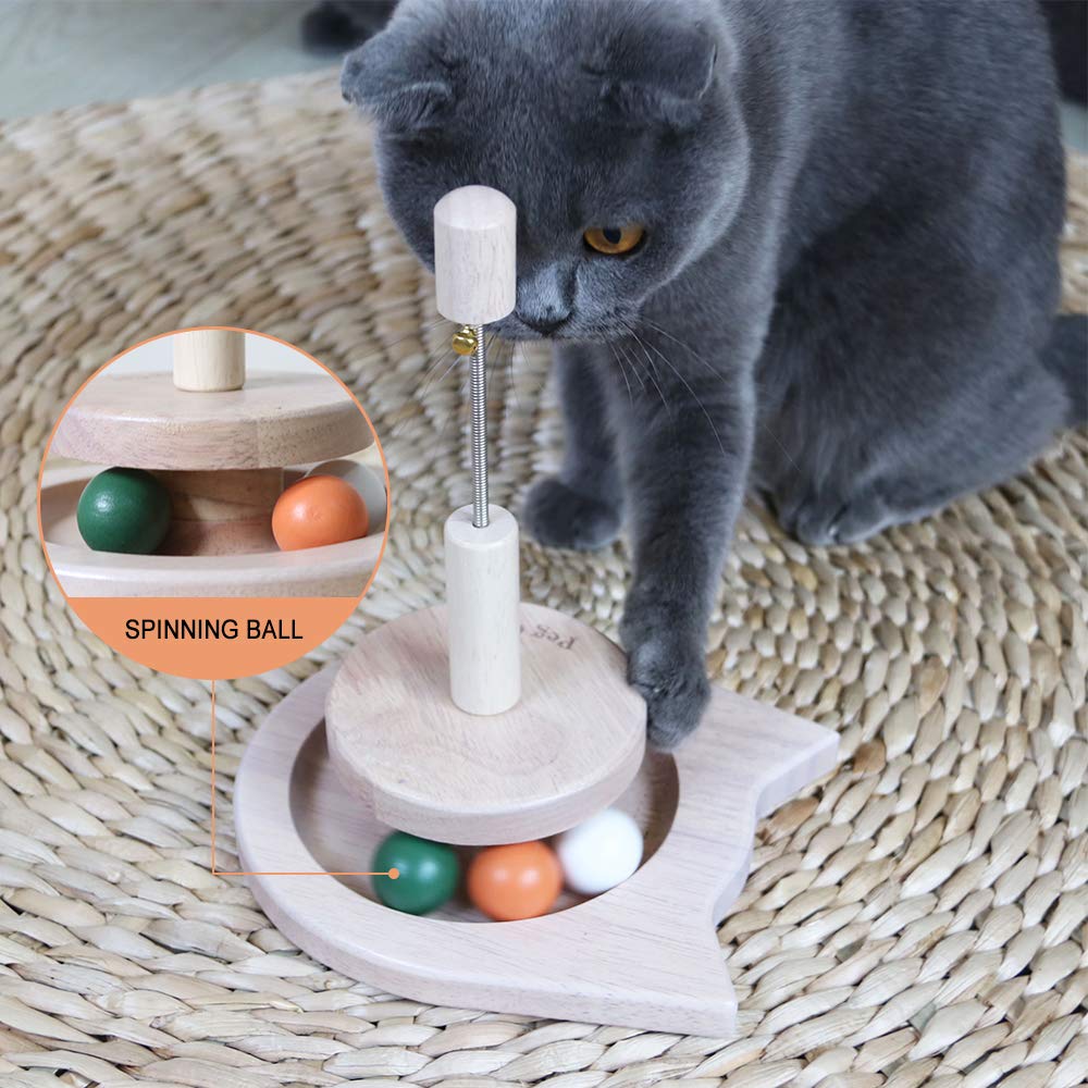 Wooden Cat Toy Spinning Balls for Pets Interactive Cat Play Exercise Roller Ball