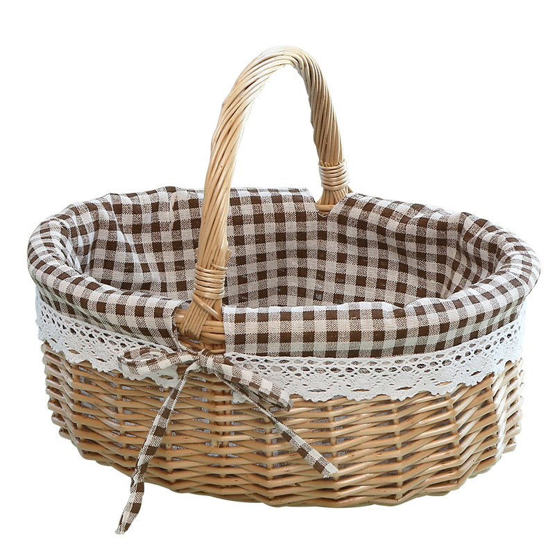 Hand-woven Picnic Basket Storage Basket Elliptical Gift Rattan Basket
