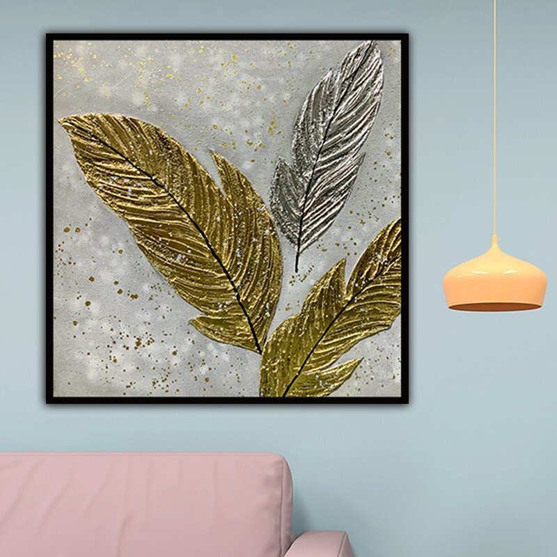 Ručno rađena uljana slika Zlatno perje Dekoracija doma Dekoracija zidova