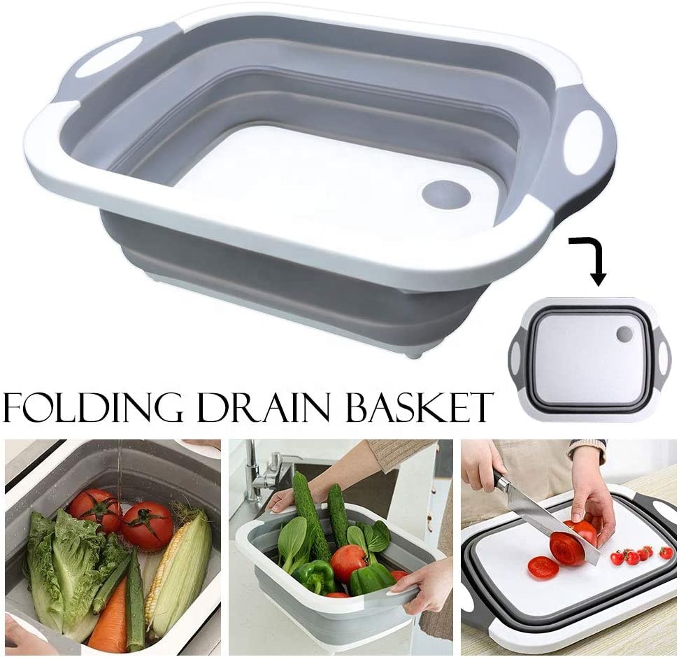 Cucina all'ingrosso taglienti di taglienti silicone cesto di frutta vegetale pieghevole 3 in 1 tagliere