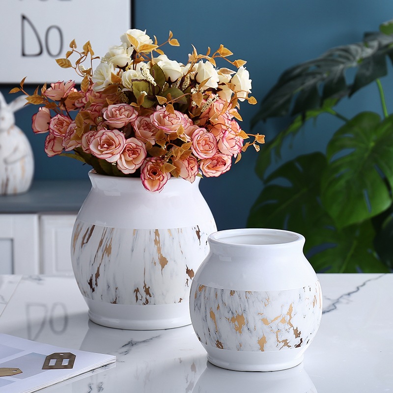 Marble White Gold Vase Handmade Process Ornaments