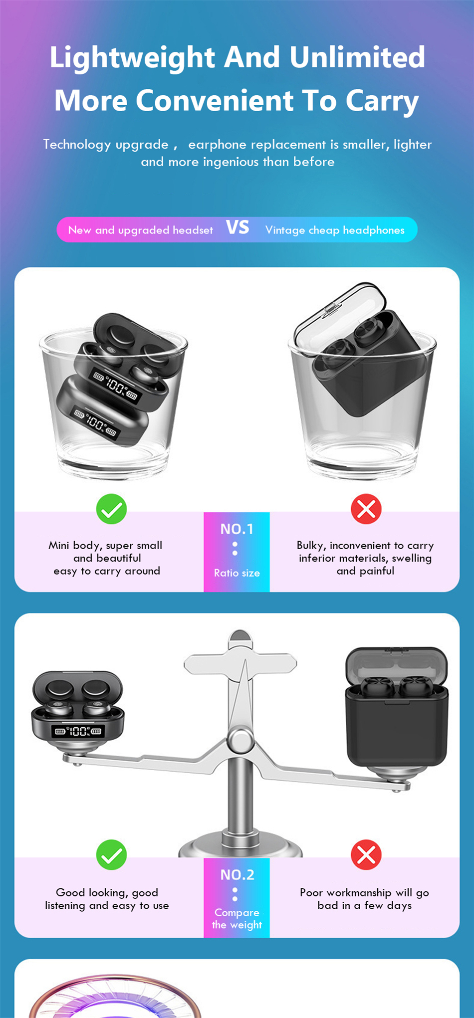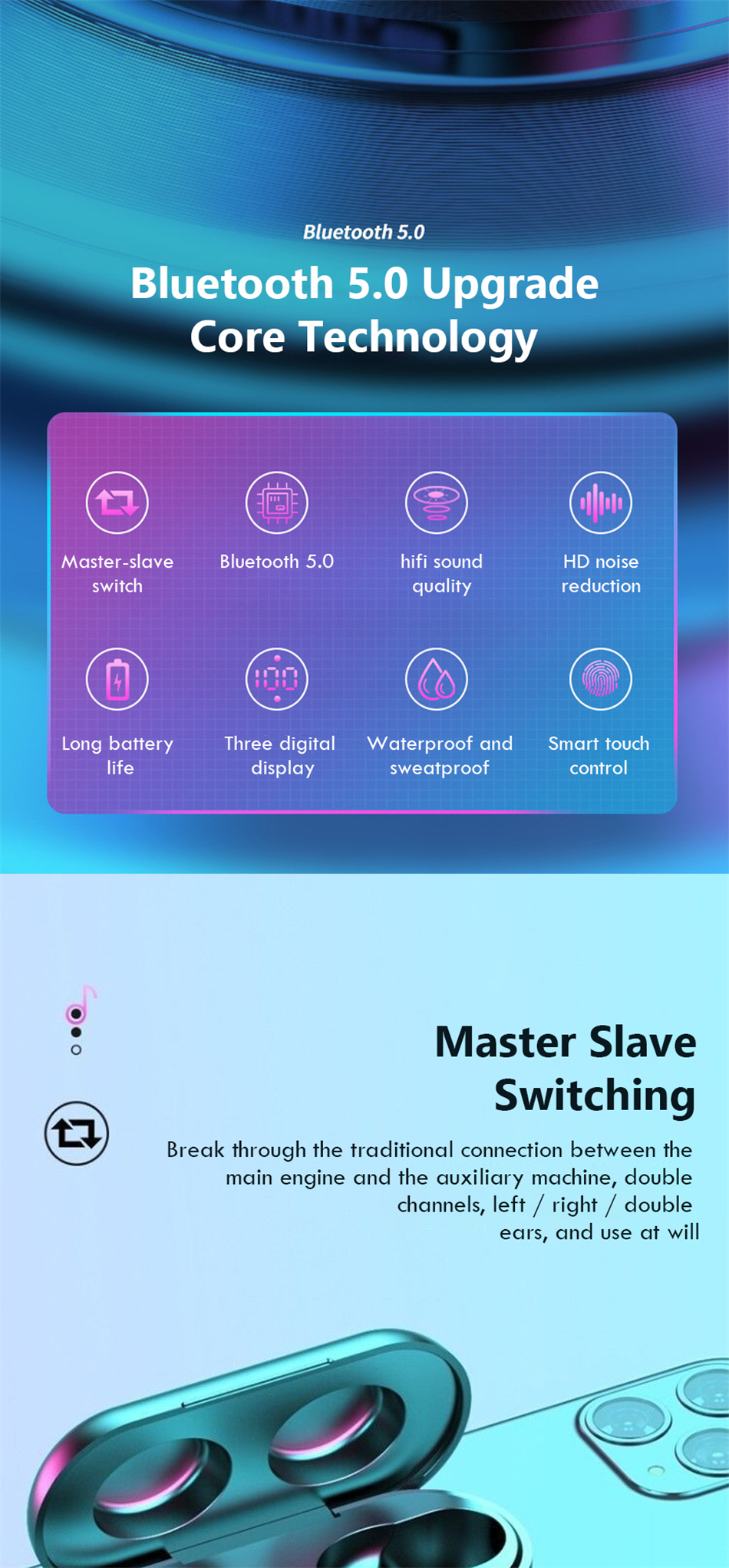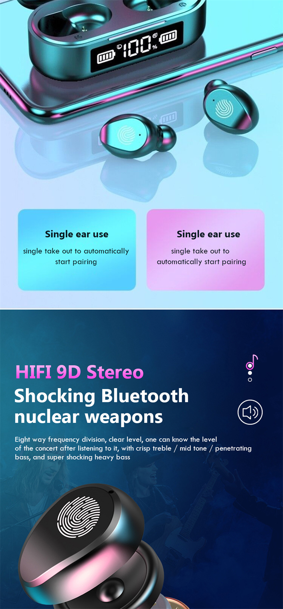 Use for Portable Media Player, Mobile Phone, COMPUTER, Dj, Gaming Function: bluetooth, Microphone Feature: HIFI Wireless Earbuds + Ture Wireless Earbuds