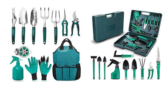 (1)Description: A full kit with all the main tools for gardening. For example, it includes a trowel, transplanter, weeder, cultivator, and pruning scissors. These tools often come in a handy carry case or bag.