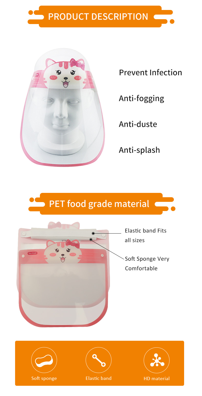 PET Bracket Reusable Plastic Face Shield for Children with Frames Visor