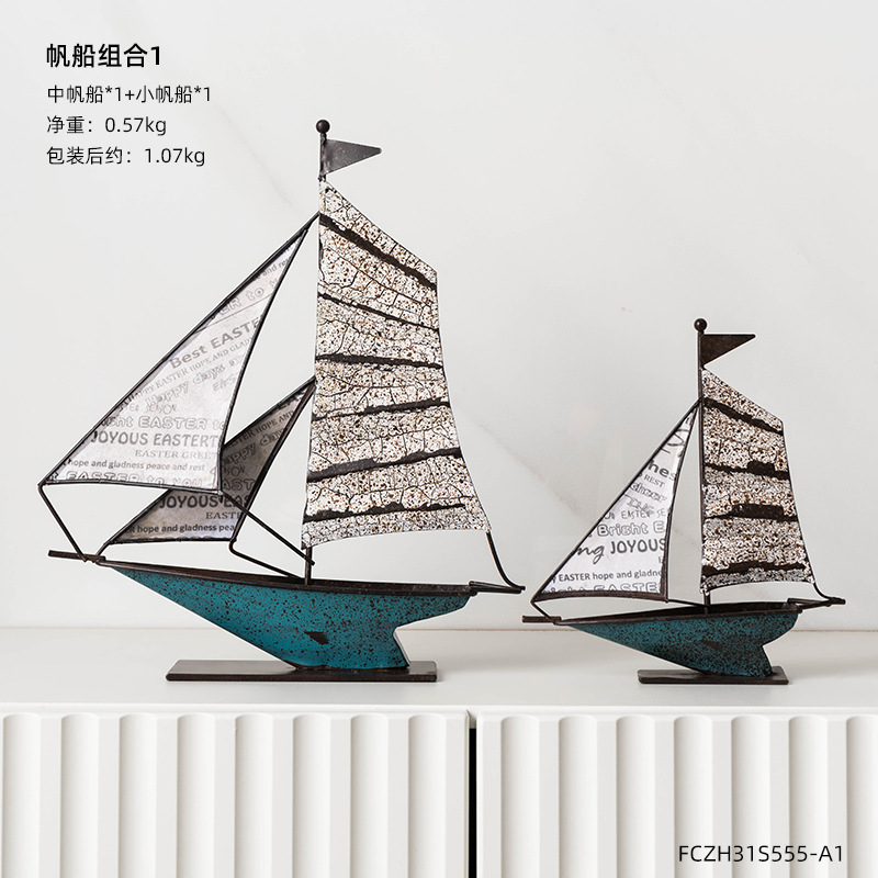 Retro Wrought Iron Sailboat Ornaments Home Decoration