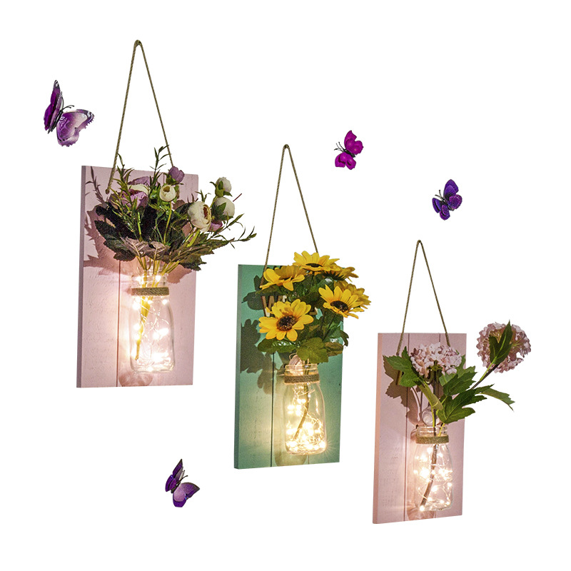 Wooden Hydroponic Wall Hanging Luminous Floral Decoration