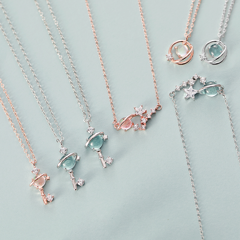Vacker Blue Universe Planet Pendent Necklace for Women China Wholesale