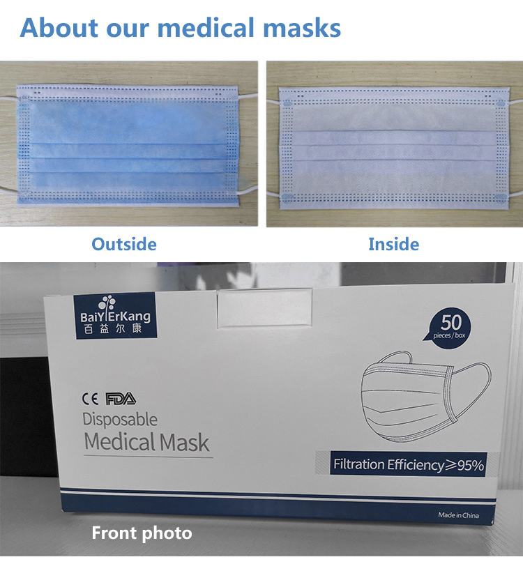 Medicinsk 3Ply Earloop Mouth Disponible Non Woven Face Mask Wholesale