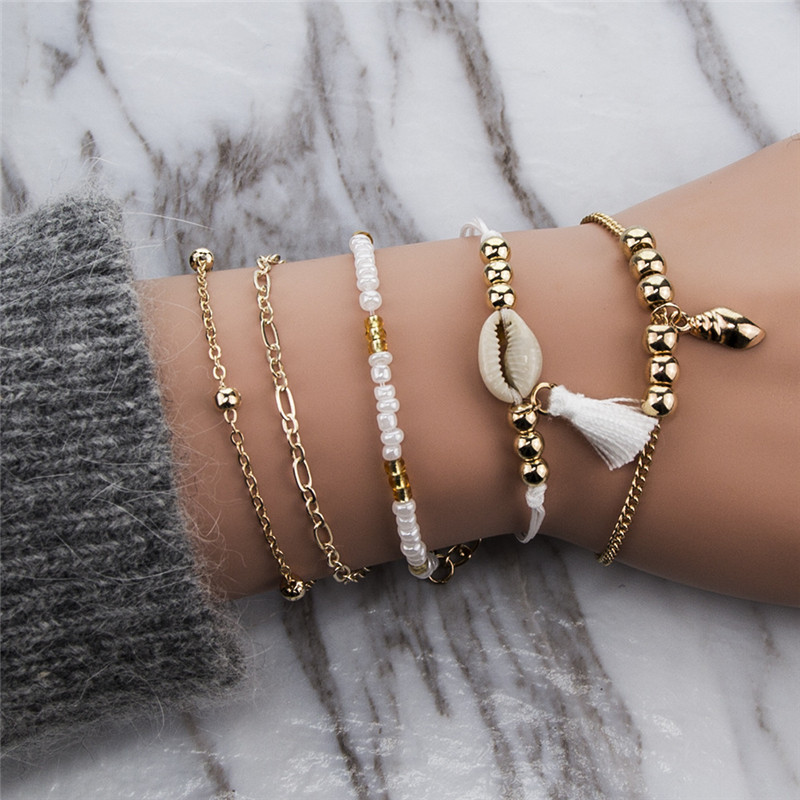 Tassel Conch Elastic Girls Fashion Bangle Puka Shell Bracelet Wholesale