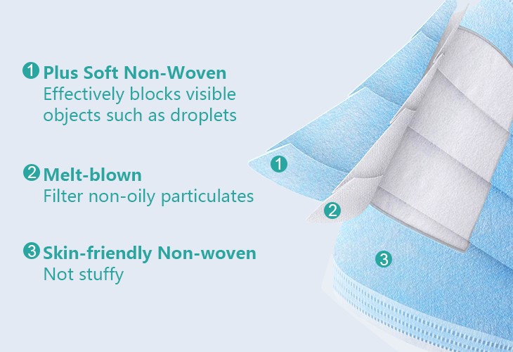 หน้ากากหน้ากากต่อต้านมลพิษ 3 แบบใบหน้าที่ไม่ทอผ้า