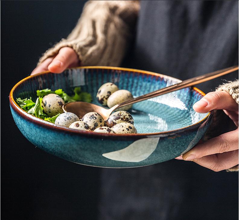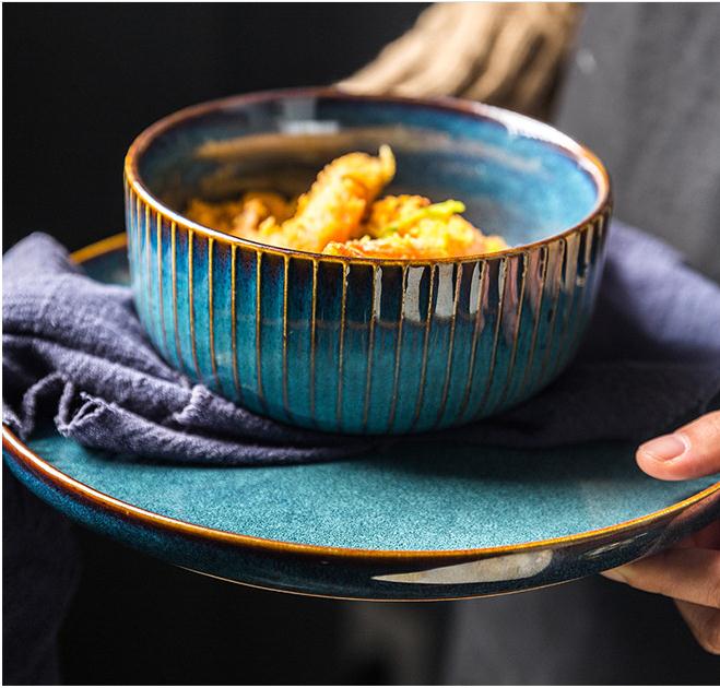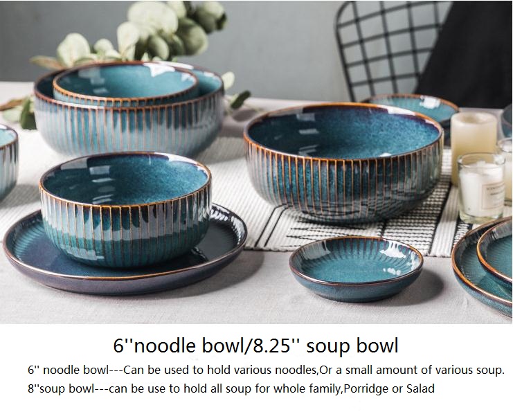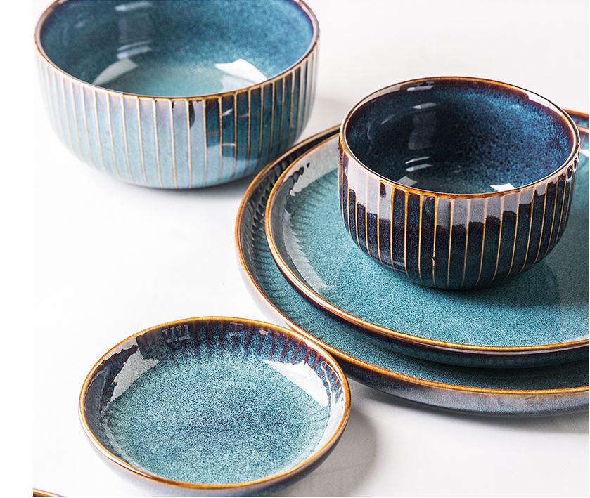 Pakyawan asul na bilog na moroccan ceramic dinnerware itakda ang hapunan plate bowl