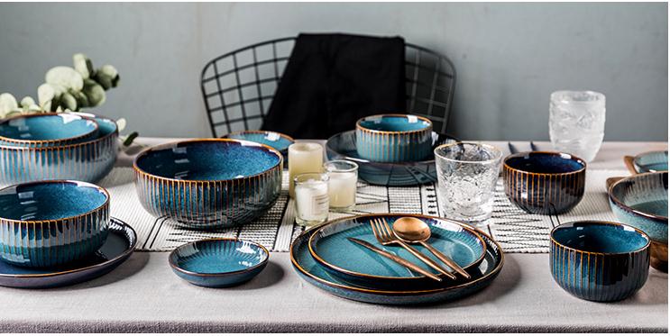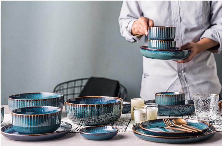 Bohemian Ceramic Tableware Set Blue White Porce ...