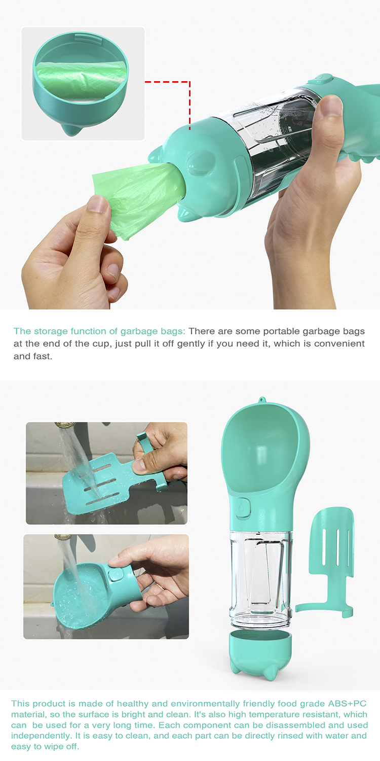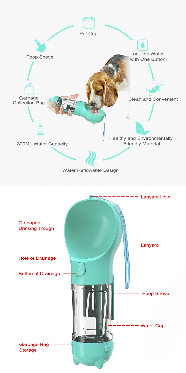 Travel Portable Multifunctional Food Container Dog Water Bottle with Poop Scoop